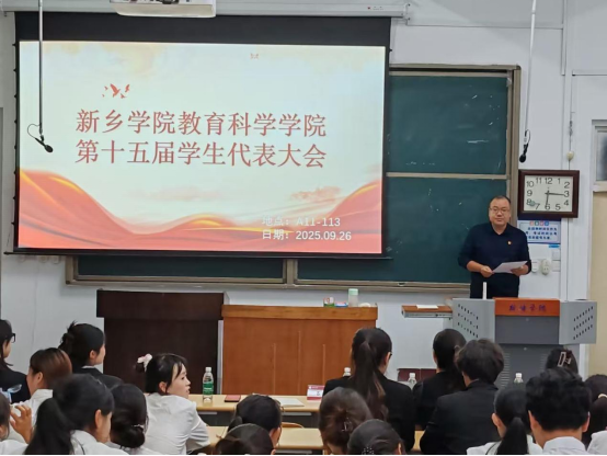2025年9月26日下午,教育科学学院第十五次学生代表大会在A11-225教室隆重举行。教育科学学院党委书记吕明哲、分团委负责人于萍出席会议,学院分团委、学生会全体成员及学生代表共同参与。大会由学院学生会执行主席夏瑀主持。