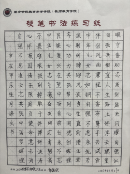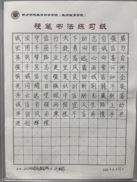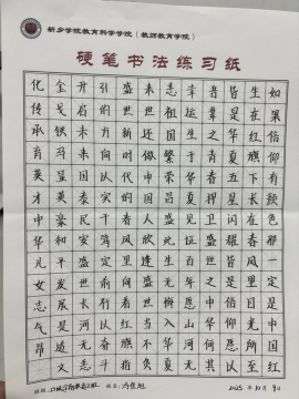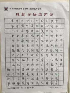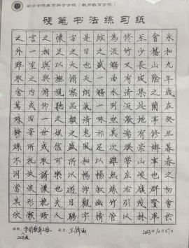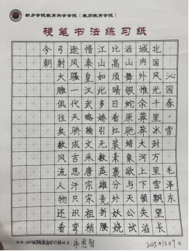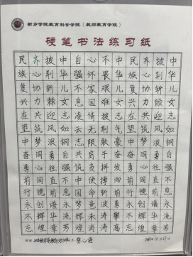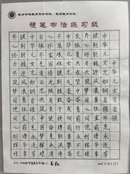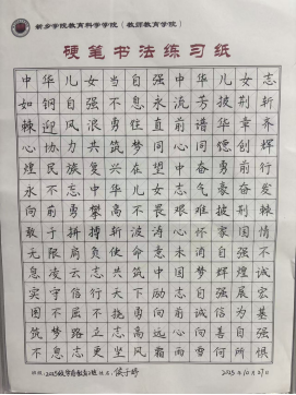 为厚植师范生专业底蕴,涵养严谨治学品格,培养展示青年大学生昂扬向上的精神风貌和浓厚的学习氛围,教育科学学院常态化组织开展硬笔书法“周周练”活动,通过“学-练-展-用”四维联动模式,让每一笔都为铸就师范生坚实基本功打下基础。