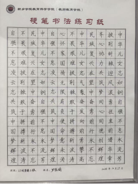 此项“周周练”活动,是我院学风建设的具象化载体。它以“练”养“心”,通过规律练习磨砺学生专注力与耐心,破除浮躁学风;以“字”育“人”,让学生在规范书写中涵养严谨态度,将“写好每一笔”的细致延伸至学业;更以集体活动形式,营造“比学赶超”的学习氛围,强化班级学风凝聚力,让学风建设从口号落地为日常行动。
