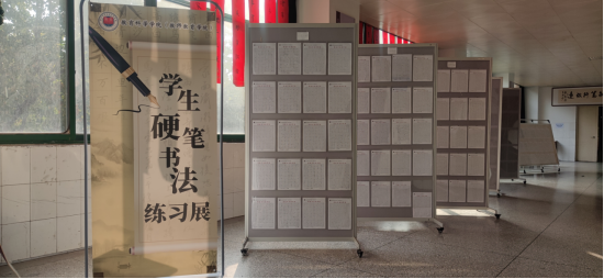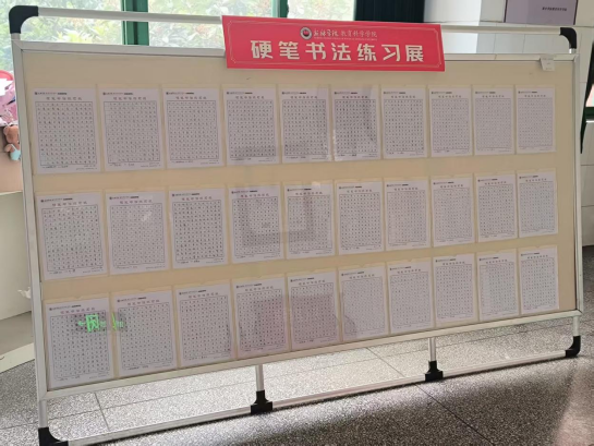此外,各年级学生的硬笔书法作品每周在学院走廊循环展示,师生共同品鉴作品,大家在观赏中学习,在点评中进步,这不仅是对练习成果的检阅,更为师生搭建起交流互动的平台,让每一份付出都被看见,让原本独自的练习变成集体的成长。