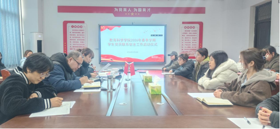 为深入落实立德树人根本任务,充分发挥党员先锋模范作用,进一步深化学生宿舍的育人阵地功能,3月3日,教育科学学院在A11号楼202会议室举行2026年春季学期学生党员“1对1”联系宿舍工作启动仪式。学院党委书记吕明哲、副书记李彦,学工办主任胡海洋,各学生党支部书记,辅导员老师、学生党员代表及2025级全体宿舍长参加了本次仪式。