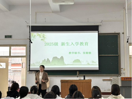 副院长张婕从学术启航角度,围绕学术素养养成、图书馆资源利用及CNKI入门使用展开了细致宣讲。她鼓励新生主动探索、善用学校丰富的教学科研资源,掌握科学的学习方法,培养严谨的治学态度,为未来的专业学习与研究之路开好头、起好步。