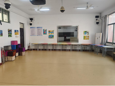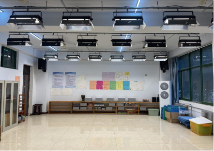 主要用于儿童音乐教学活动设计,儿童歌舞编排,乐器等课程教学,同时该教室也是全校师生排练课本剧、舞台剧、心理剧等活动的主要场所。